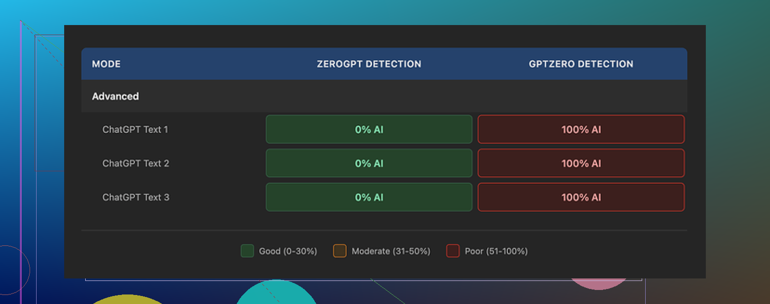 So yes, it seems tuned for ZeroGPT-style detection. If your teacher or client uses something else, it feels like a guess.