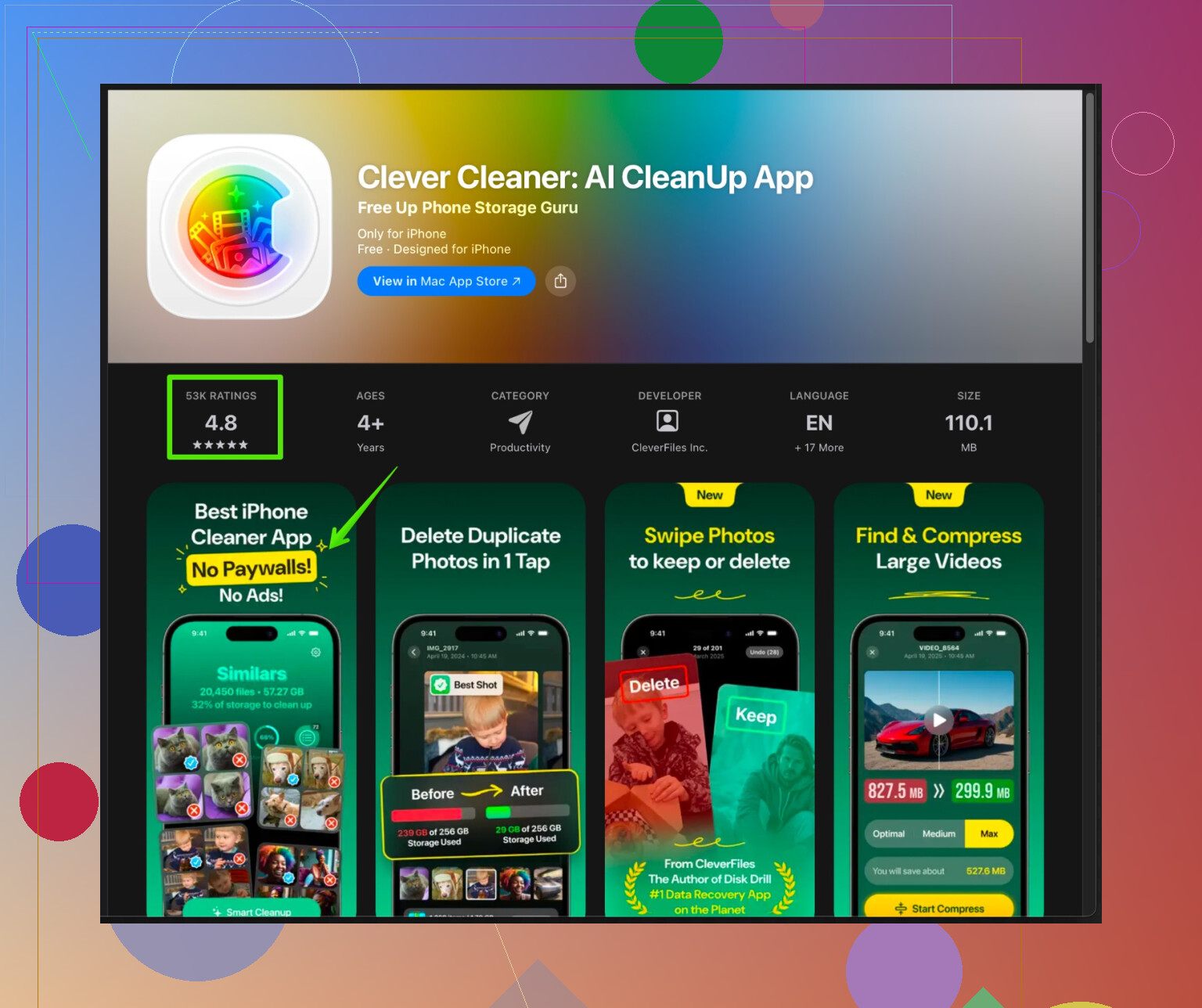 nettoyage intelligent du stockage iPhone avec Clever Cleaner.