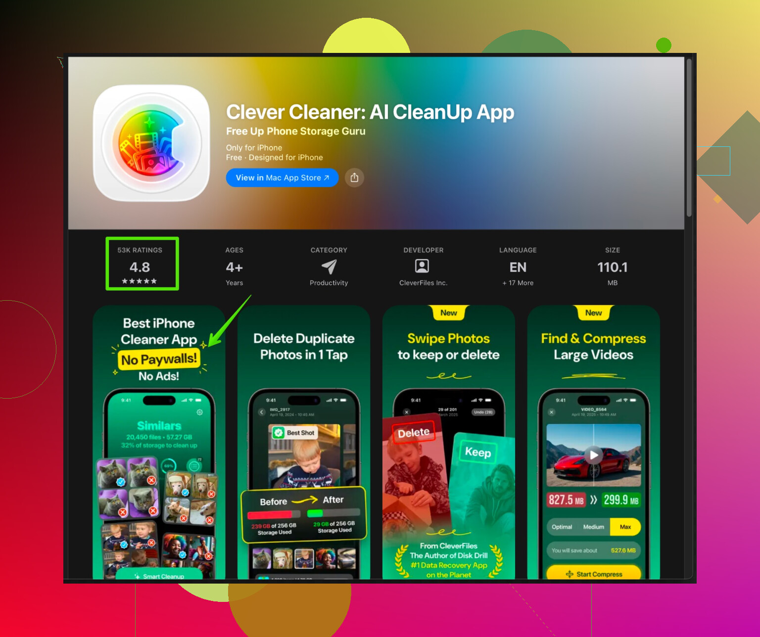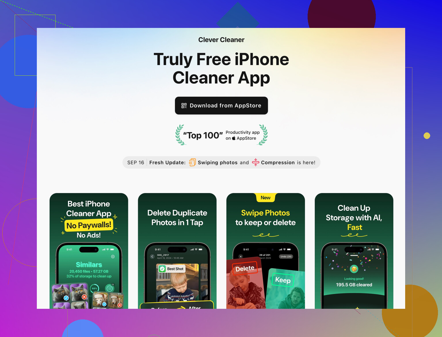 Si tu preocupación principal es limpiar espacio y no un falso “turbo de RAM”, busca algo centrado en gestión de medios en lugar de “magia con IA”. Un ejemplo es Clever Cleaner App, que se enfoca más en organizar y limpiar de forma inteligente las fotos y vídeos de tu iPhone en vez de fingir que hackea el sistema.