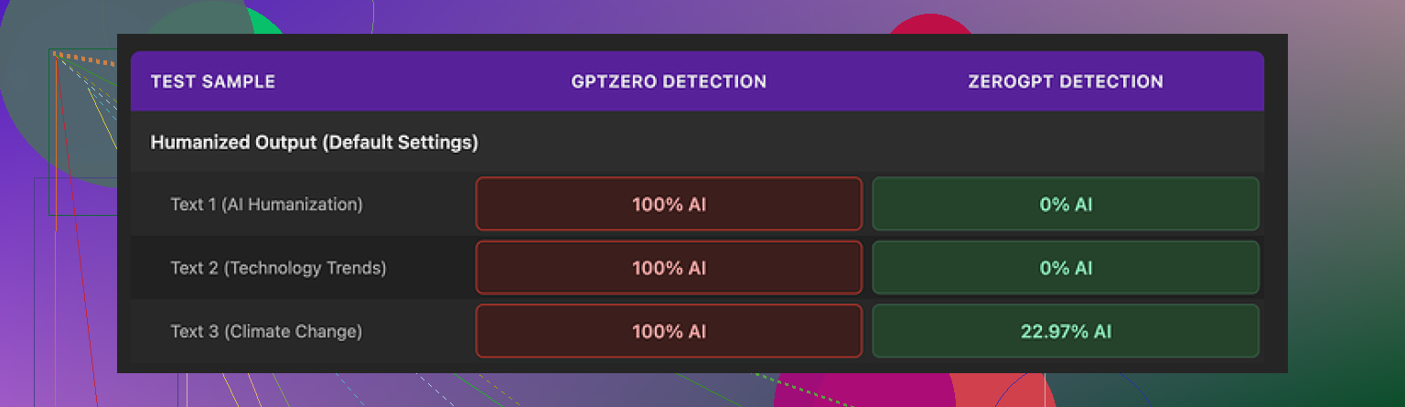 So on ZeroGPT it looked decent. On GPTZero it failed hard. If you do not know which detector your text will face, this makes the tool risky. You have no knobs to tweak, so there is no way to systematically improve your odds.