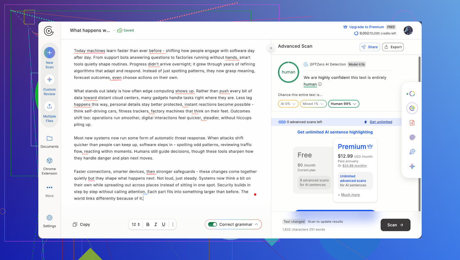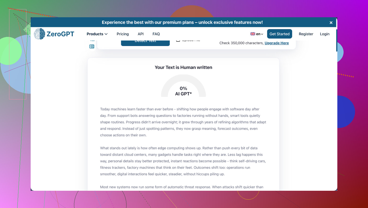 It does not shorten your text much, which some people like, but GPTZero flagged everything I threw at it. The internal detector reported better results than external tools showed.